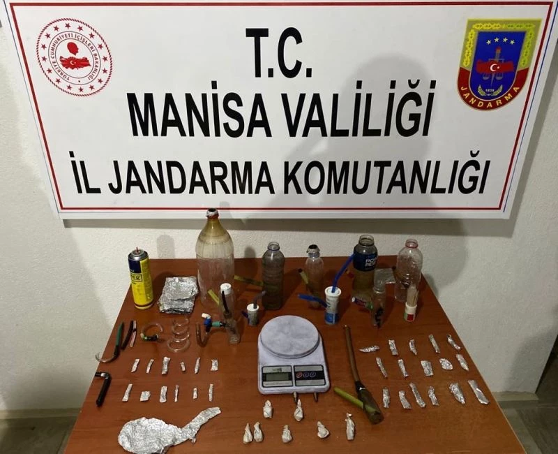 Saruhanlı ilçesine bağlı Gökçeköy Mahallesi’nde devriye görevi yapan Saruhanlı İlçe Jandarma Komutanlığı ekipleri, şüphe üzerine durdurdukları bir araçta uyuşturucu madde kullanma aparatı buldu. Ekiplerin araç içerisinde yaptıkları aramada uyuşturucu kullanma aparatı ile 4 gram esrar, 3 gram da metamfetamin ele geçirildi. Gözaltına alınan şüpheliler A.Z.A., S.S., M.K. ve U.B. karakola götürüldü. Jandarma ekipleri şüphelilerden U.B.’nin evinde yaptıkları aramada da 22 paket halinde toplamda 30 gram esrar olduğu değerlendirilen madde, 11 paket halinde 7 gram metamfetamin olduğu değerlendirilen madde, açık vaziyette yaklaşık 5 gram esrar olduğu değerlendirilen madde, yaklaşık 2 gram maraş otu olduğu değerlendirilen madde ile 7 adet uyuşturucu kullanma aparatı ele geçirdi. Karakoldaki işlemlerine devam edilen şüphelilerin adliyeye sevk edileceği öğrenildi.