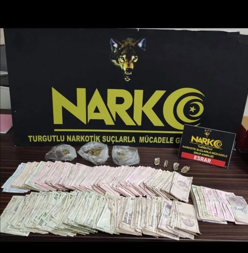 Manisa İl Emniyet Turgutlu Narkotik Suçlarla Mücadele Büro Amirliği görevlilerince uyuşturucu veya uyarıcı madde ticareti yapan, nakleden ve kullanan şahıslara yönelik yapılan çalışmalarda 1 şahsın üzerinden; 4 parça halinde toplam 2,58 gram esrar, uyuşturucu madde ticaretinden elde edildiği değerlendirilen 2 bin 55 TL para ele geçirildi. Şahsın ikametinde de yapılan aramada, 3 parça halinde 38,80 gram esrar, uyuşturucu madde ticaretinden elde edildiği değerlendirilen 10 bin 260 TL para ele geçirildi. Şahsın üst ve ikamet aramasında toplam 41,38 gram esrar, 12 bin 315 TL ele geçirildi. Konuyla ilgili Şüpheli H.Ç. (25) isimli şahıs hakkında uyuşturucu veya uyarıcı madde imal ve ticareti yapmak suçundan işlem yapılarak, sevk edildiği mahkemece tutuklandı.