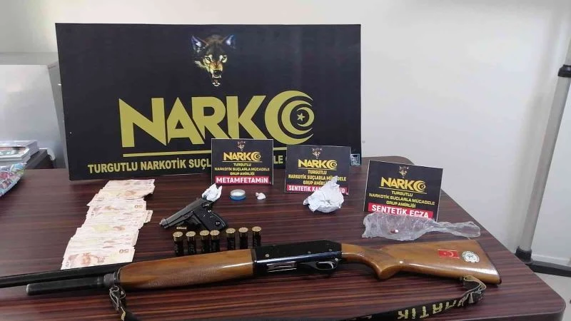 Manisa İl Emniyet Müdürlüğüne bağlı Narkotik Suçlarla Mücadele Şube Müdürlüğü ve Turgutlu Narkotik Suçlarla Mücadele Grup Amirliği tarafından uyuşturucu veya uyarıcı madde ticareti yapan, nakleden ve kullanan şahıslara yönelik operasyon düzenlendi. Operasyon kapsamında 7 ev ve 1 iş yerine düzenlenen baskında 14,73 gram metamfetamin maddesi, 2 gram sentetik kannabinoid (bonzai) maddesi, 2,04 gram esrar maddesi, 1 adet sentetik ecza, adet 7,65 mm ruhsatsız tabanca, 1 adet ruhsatsız tüfek ve 7 adet kartuş ile uyuşturucu madde ticaretinden elde edildiği değerlendirileb 5 bin TL para ele geçirildi. Operasyon kapsamında 9 şüpheli yakalanarak gözaltına alındı.