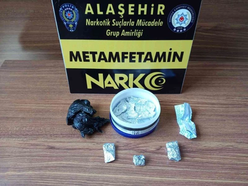 Alaşehir İlçe Emniyet Müdürlüğü Narkotik Suçlarla Mücadele Grup Amirliği görevlileri ’Uyuşturucu madde ticareti yapan, kullanan ve nakleden’ şahıslara yönelik yapılan çalışmalarda, A.M. (33) isimli yabancı şahıs üzerinde 1,37 gram, 0,36 gram ve 0,98 gram olmak üzere 3 parça halinde beyaz kağıda sarılı toplam 2,80 gram metamfetamin, siyah poşete sarılı 2,30 gram metamfetamin ele geçirildi. Emniyetteki sorgusu tamamlanan şüpheli çıkarıldığı mahkeme tarafından tutuklandı.