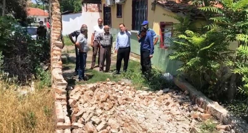 Manisa’da meydana gelen 5.5 büyüklüğündeki depremin ardından hasarlı binalar tek tep tespit edilmeye başlandı. Akhisar’ın Akselendi Mahallesindeki caminin ardından Beyoba Mahallesinde de bazı eski ev ve binalarda derin çatlaklar ve yıkımlar meydana geldiği görüldü.