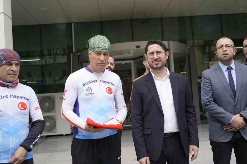 Manisa ve ilçelerinden bisikletseverlerin oluşturduğu Manisa Bisiklet Hayattır Grubu, 29 - 30 Nisan tarihinde ’Çanakkale Şehitlerimize Saygı Sürüşü’ yapacak. Manisa’dan Çanakkale’ye kadar pedal çevirecek olan sporculara Yunusemre Belediyesi önünde gerçekleştirilen tören ile Türk bayrağı ve flama verildi. Törene Yunusemre Belediye Başkanvekili Arif Alkan, Yunusemre Belediyesi Gençlik ve Spor Hizmetleri Müdürü Abdullah Can, Türkiye Bisiklet Federasyonu Temsilcisi Remzi Yıldız, Manisa Bisiklet Hayattır Grubu Başkanı Timur Bozkurt, Manisa Gençlik ve Spor Müdürlüğü Bisiklet Antrenörü Rümeysa Daloğlu ve sporcular katıldı. Bayrak ve flamayı Yunusemre Belediye Başkanvekili Arif Alkan’ın elinden alan Manisa Bisiklet Hayattır Grubu Başkanı Timur Bozkurt, ’Çanakkale Şehitlerimize Saygı Sürüşü’ dolayısıyla kendilerine her türlü desteği veren Yunusemre Belediyesi’ne teşekkür etti.