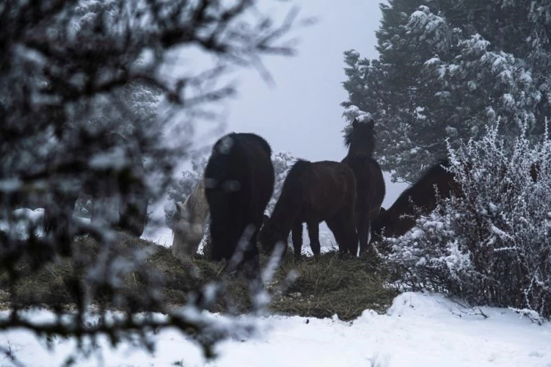 Manisa’nın yoğun kar yağışı nedeniyle beyaza bürünen 1517 metre rakımlı Spil Dağı Milli Parkı’nda yiyecek bulmakta güçlük çeken yılkı atları için Doğa Koruma ve Milli Parklar 4. Bölge Müdürlüğüne bağlı Spil Dağı Milli Park Müdürlüğü ekipleri tarafından yem bırakıldı.