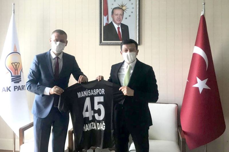 Manisaspor Kulüp Başkanı Murat Yörük ve yöneticiler Kadri Güngüler ve Yasin Okay, Ankara’da ilk olarak Manisalı olan AK Parti Genel Başkan Yardımcısı Hamza Dağ’ı makamında ziyaret etti. Kulüp Başkanı Murat Yörük ve yöneticiler Kadri Güngüler ve Yasin Okay, Dağ’a isminin yazılı olduğu 45 numaralı Manisaspor forması ve mesir macunu hediye etti. AK Parti Genel Başkan Yardımcısı Hamza Dağ’ın ardından Manisaspor heyeti sırasıyla Milliyetçi Hareket Partisi Kocaeli Milletvekili Saffet Sancaklı, AK Parti İzmir Milletvekili eski milli futbolcu Alpay Özalan ve Ülkü Ocakları Eski Genel Başkanı ve MHP Mersin Milletvekili Olcay Kılavuz’ı ziyaret etti. Kendilerini Ankara’da kabul eden AK Parti Genel Başkan Yardımcısı Hamza Dağ, Milliyetçi Hareket Partisi Kocaeli Milletvekili Saffet Sancaklı, AK Parti İzmir Milletvekili Alpay Özalan ve Ülkü Ocakları Eski Genel Başkanı ve MHP Mersin Milletvekili Olcay Kılavuz’a teşekkür eden Kulüp Başkanı Murat Yörük, "Manisasporumuz hakkında fikir alışverişi için Ankara’da bir dizi ziyaretler gerçekleştirdik. Ziyaretlerimiz oldukça olumlu geçti. Manisaspor için herşey güzel olacak. Kendilerine bir kez daha Manisaspor camiası ve şahşım adına teşekkür ediyorum." dedi.