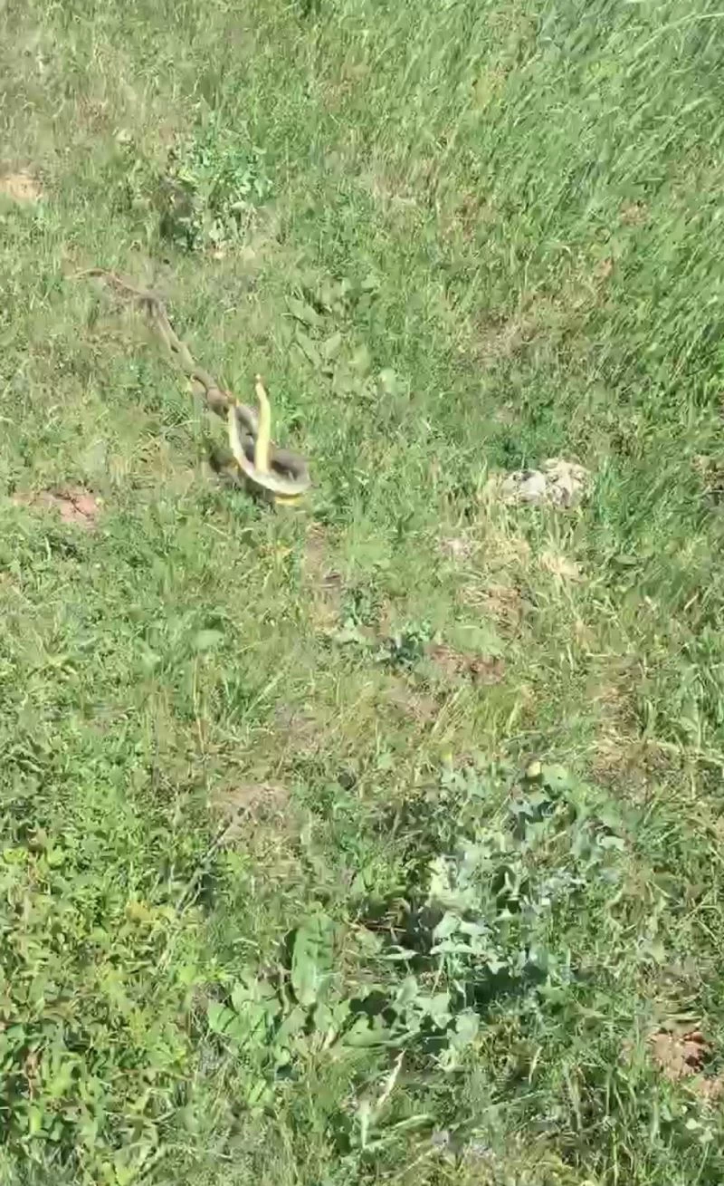 Sivas’tın Doğanşar ilçesinde araziye mantar toplamaya çıkan bir kişi yılanların çiftleşme dansını cep telefonu kamerası ile görüntüledi