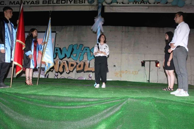 4 şubeden 95 öğrencinin mezun olduğu Manyas Anadolu Lisesinde düzenlenen etkinlik saygı duruşu ve İstiklal Marşının okunmasıyla başladı. Okul Müdürü Hayriye Başaran, öğrencilere bundan sonraki yaşamlarında başarı dilerken “Sizlerin artık okulumuz da son günleri, bundan sonra kimse sizin, kılık, kıyafetinizi sorgulamayacak, neden geç geldiniz demeyecek, temennim istediğiniz alanda kendinizi en güzel şekilde yetiştirir, ülkemiz için iyi birer fert olursunuz” dedi.
