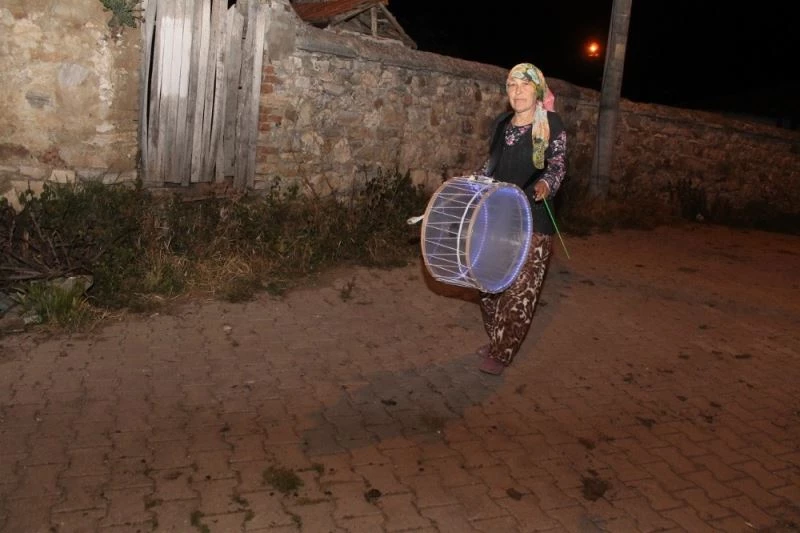 Balıkesir’in Manyas ilçesinde 5 çocuk annesi Sevgi Cankurt, bu ramazan ayında da komşularını sahura eline aldığı davulla kaldırdı.