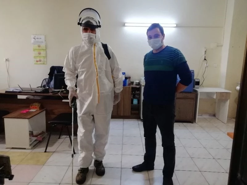 Manyas Belediye Başkanı Tancan Barçın özellikle vatandaşların yoğun olarak kullandığı cadde, meydan ve parklar ile birlikte ilçe esnaflarının dükkânlarında ilaçlama işlemlerini sürdüklerini açıkladı. Sırt pompası ile dezenfektan çalışmalarını sürdüren personel, çalışmaları sırasında koruyucu giysi kullanıyor.