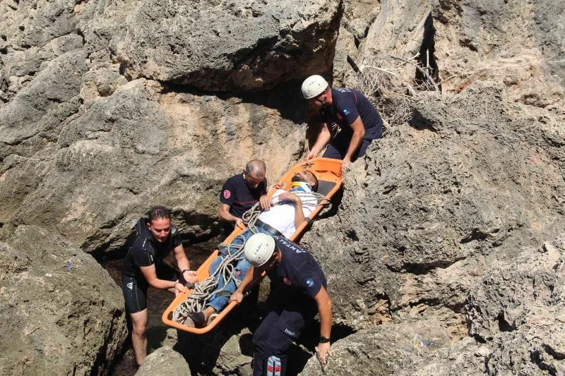 Antalya’da manzara izlemek için çıktığı yaklaşık 30 metre yüksekliğindeki falezlerden düşerek yaralanan genci deniz polisi ve itfaiye ekipleri kurtardı.