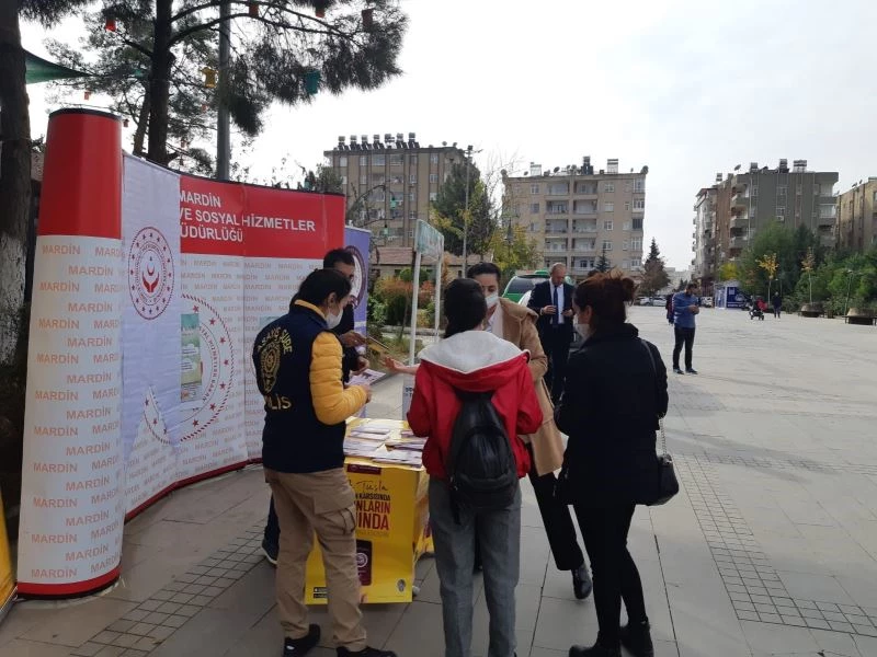 Mardin’in Artuklu ilçesinde 15 Temmuz Demokrasi ve Şehitler Parkı ve Mardian Mall Alışveriş Merkezinde Mardin İl Emniyet Müdürlüğü görevlileri ile Mardin Aile ve Sosyal Hizmetler İl Müdürlüğüne bağlı Şiddet Önleme ve İzleme Merkezi Müdürlüğü görevlileri 25 Kasım Kadına Yönelik Şiddete Karşı Uluslararası Mücadele Günü kapsamında broşür dağıtarak Kadın Acil Destek (KADES) uygulamasının tanıtımını gerçekleştirdi. KADES uygulamasıyla şiddete maruz kalan kadınlar tek tuşla kolluk kuvvetlerine en hızlı şekilde ulaşabilecekler. Şiddete yönelik bilgilendirme yapılarak Şiddet Önleme ve İzleme Merkezlerinin (ŞÖNİM) tanıtımı yapıldı. Şiddete uğrayan kadınlara yönelik verilebilecek hizmetler sağlık, barınma, eğitim, hukuksal, sosyal ve ekonomik destek sağlanması ile ilgili gerekli bilgilendirmeler vatandaşlara yapıldı.