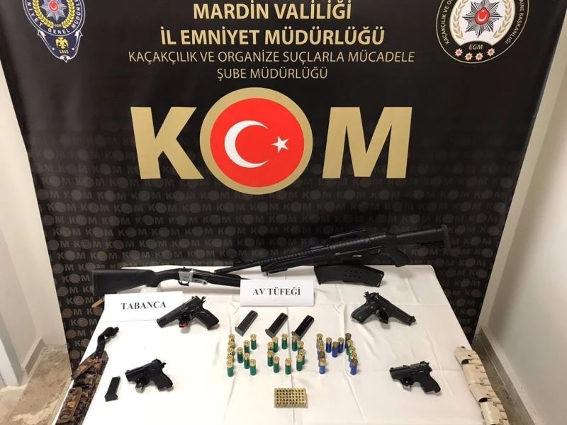 Mardin Cumhuriyet Başsavcılığı’nın talimatı doğrultusunda İl Emniyet Müdürlüğü Kaçakçılık ve Organize Suçlarla Mücadele Şubesi ekipleri, ’silah ticareti yapmak’ ve ’ruhsatsız silah bulundurmak’ suçları kapsamında, Artuklu, Midyat ve Savur ilçelerinde bazı adreslere eş zamanlı operasyon düzenledi. Ekipler, operasyonda 11 şüpheliyi gözaltına aldı. Adreslerde yapılan aramalarda, 4 tabanca, 2 ruhsatsız av tüfeği, 7 şarjör ve 132 fişek ele geçirildi.
