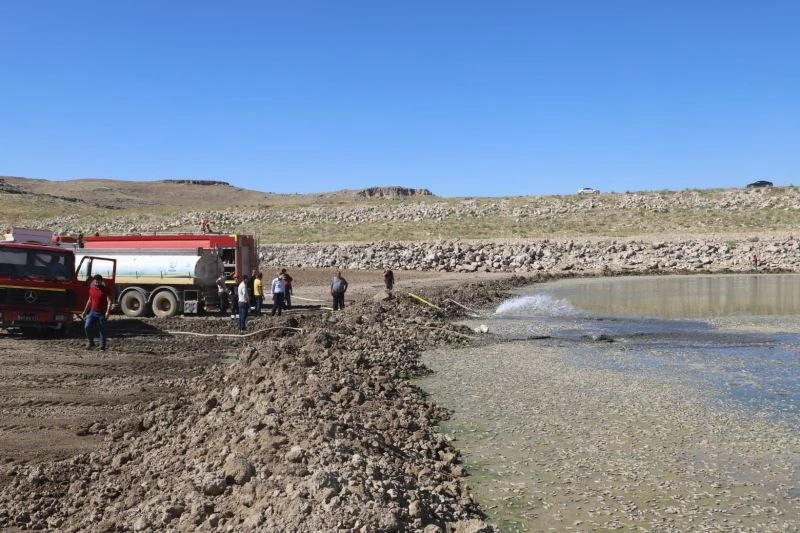 Mardin’in Mazıdağı ilçesi Kocakent Mahallesinde bulunan gölette su seviyesinin düşmesi nedeniyle yüzeye vuran binlerce balık yapılan müdahalelerin ardından telef olmaktan kurtarıldı.