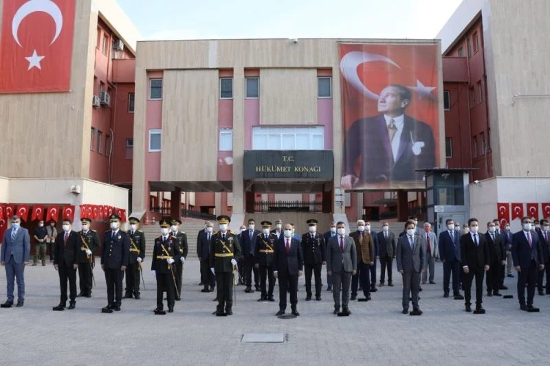 Mardin’de Gazi Mustafa Kemal Atatürk’ün önderliğinde kurulan cumhuriyetin 97’nci yıl dönümü nedeniyle sosyal mesafe kuralına riayet edilerek gerçekleşen tören Vali Mahmut Demirtaş’ın valilik makamında tebrikleri kabul etmesinin ardından Hükümet Konağı Meydanında saygı duruşu, İstiklal Marşı’nın okunması ve ay yıldızlı bayrağın göndere çekilmesiyle başladı.