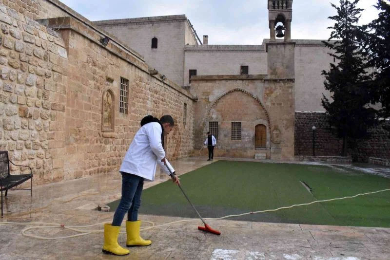 Mardin Büyükşehir Belediyesi, Süryani vatandaşların kutladığı Doğuş Bayramı öncesi kiliselerde bayram temizliği yaptı.