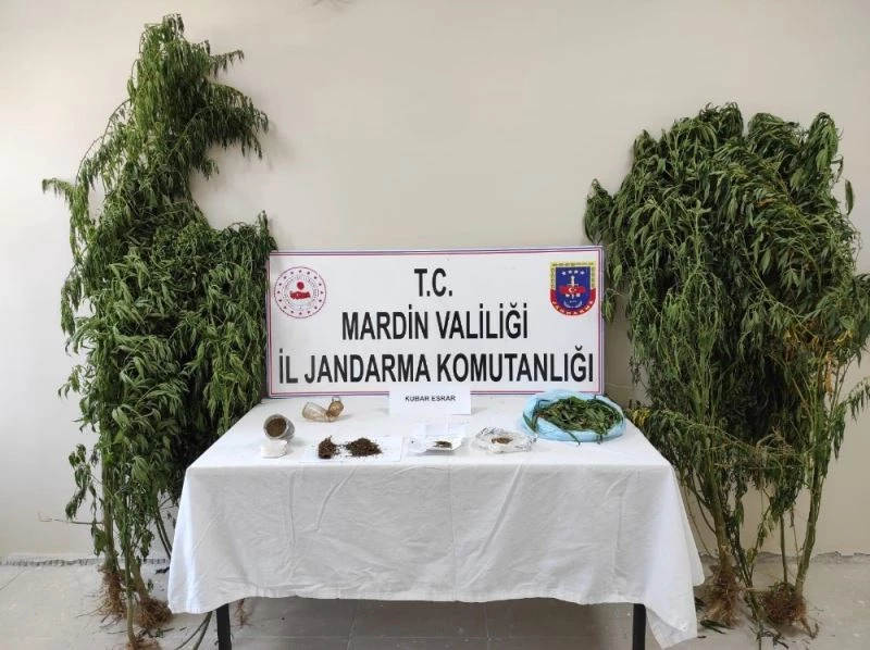 Mardin İl Jandarma Komutanlığı ekipleri tarafından yapılan istihbari çalışmalar neticesinde 2 şahsın bahçesinde 150 gram kubar esrar, 15 kök kenevir bitkisi ile 20 gram kenevir tohumu ele geçirildi.