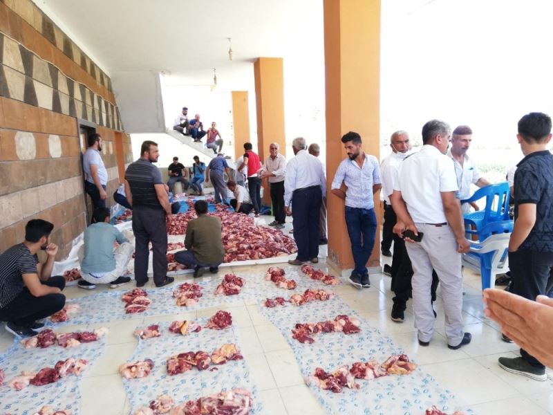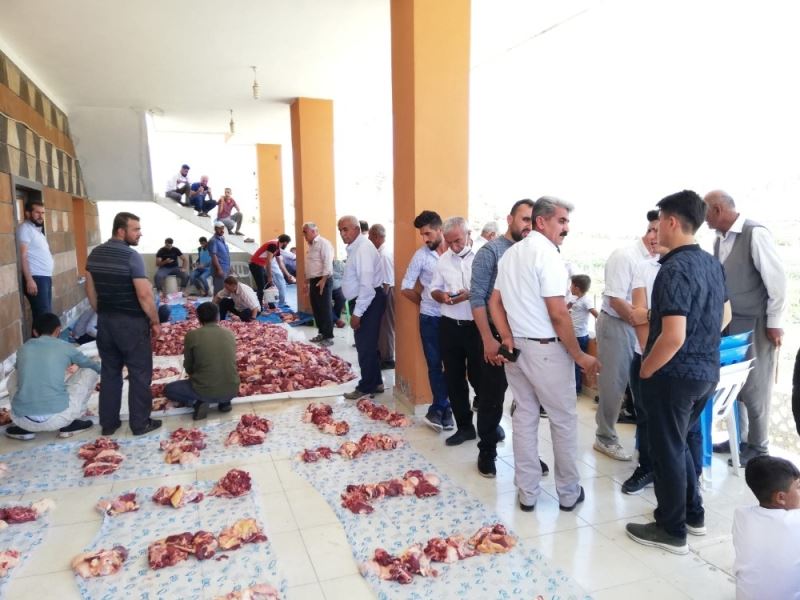 Mardin’in Mazıdağı ilçesine bağlı kırsal Yetkinler Mahallesi’nde köylüler yardımlaşma adına örnek bir davranışa imza attı. Köylüler, kestikleri kurban etlerini imece usulü taziye evinde toplayıp ihtiyaç sahiplerine dağıttı.