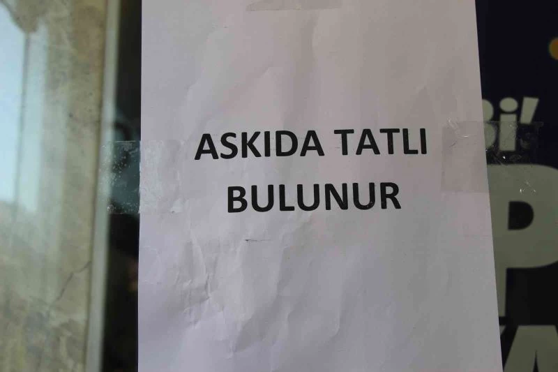 35 yıldır baba mesleği olan tatlıcılık yaptıklarını söyleyen Fırat Alan, “Her yıl olduğu gibi bu yılda askıda ekmek değil de, askıda tatlı uygulaması yapıyoruz. Hayırsever vatandaşlarımızı her sene olduğu gibi bekliyoruz. Günlük 30-40 kiloya yakın askıda tatlı bırakılıyor. Bizlerde bunu ihtiyacı olan insanlara, kurumlara ve derneklere veriyoruz. Bu konuda çok güzel bir destek alıyoruz. Hayırsever müşterilerimiz çok var. Gelip ücretini verenler oluyor” dedi.