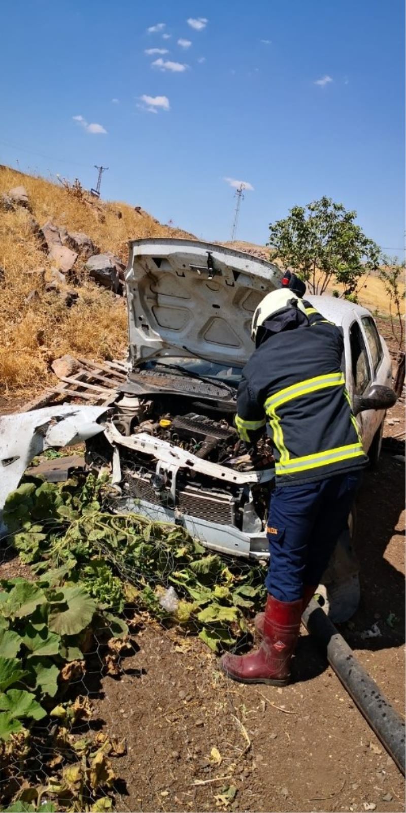 Mardin’in Derik ilçesinde otomobil şarampole yuvarlandı, kazada sürücü yaralandı.