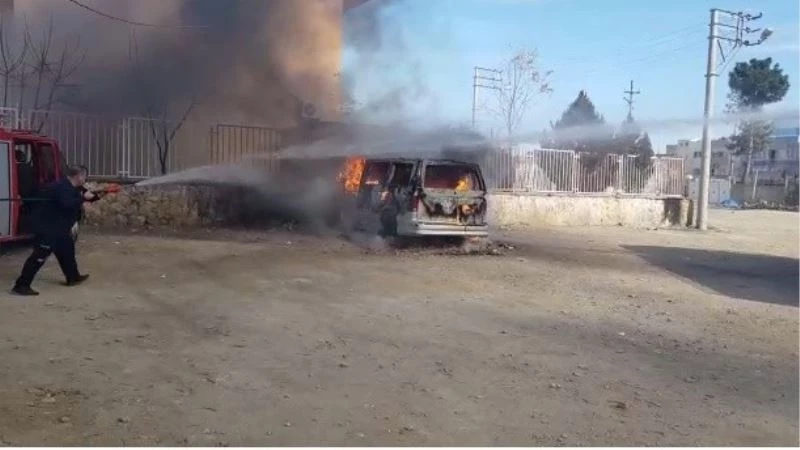 Mardin’in Nusaybin ilçesinde alev alan park halindeki minibüs küle döndü. Ölen ya da yaralanın olmadığı olayda araç kullanılamaz hale geldi.