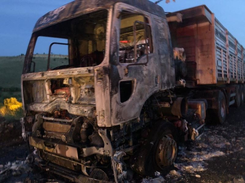 Mardin’in Yeşilli ilçesinde park halinde bulunan tır yanarak kullanılamaz hale geldi.