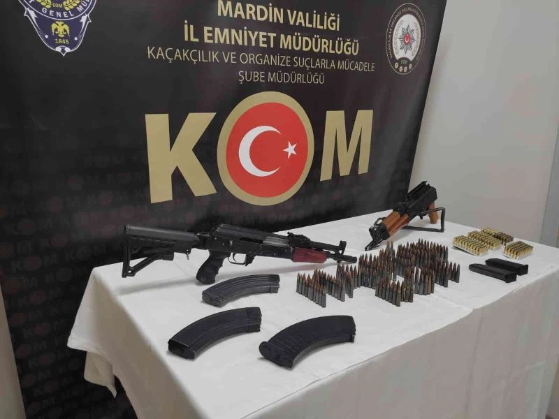 Mardin İl Emniyet Müdürlüğünden yapılan açıklamada, Kaçakçılık ve Organize Suçlarla Mücadele (KOM) Şube Müdürlüğünün tespit ettiği adrese yaptığı operasyonda, 2 adet ruhsatsız AK-47 kaleşnikof tüfek, 3 adet AK-47 şarjörü, 216 adet AK-47 fişeği, 230 adet 9milim fişek, 2 adet tabanca şarjörü ele geçirildiği bildirildi. Olayla ilgili gözaltına alınan şahıs hakkında soruşturma başlatıldığı belirtildi.