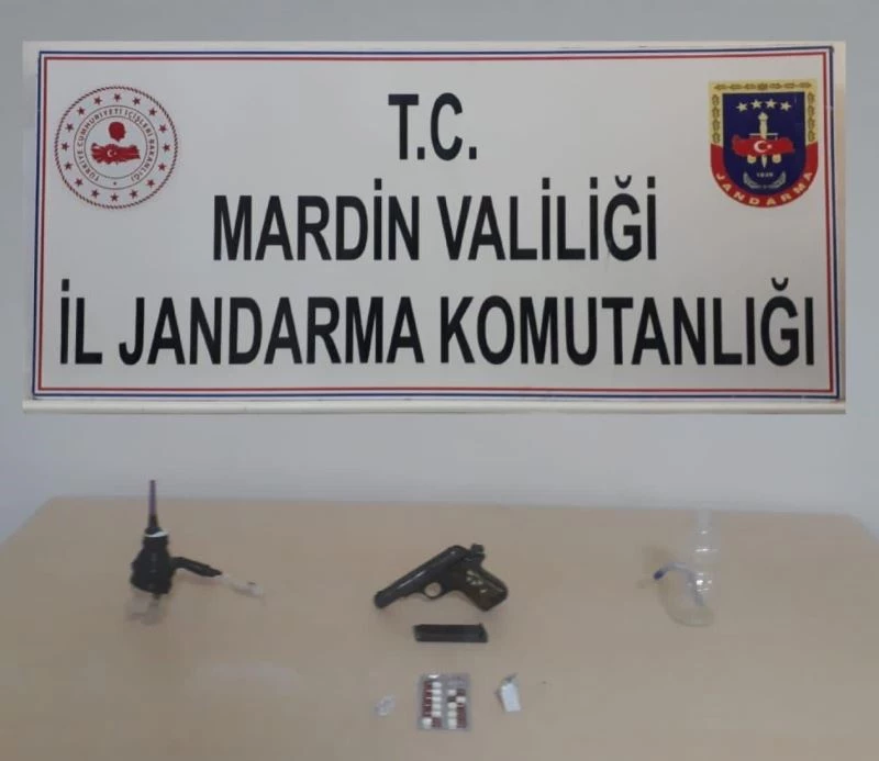 Artuklu İlçe Jandarma Komutanlığı ve KOM Şube Müdürlüğü ekiplerince yapılan istihbari çalışmalar sonucu Artuklu ilçesi Yaylacık Mahallesi’nde ikamet eden iki şahsın uyuşturucu madde bulundurduğu tespit edildi. Jandarma ekiplerince yapılan operasyonda U.A.’nın üstünde yapılan aramada 1 adet ruhsatsız tabanca, Y.T.’nin üstünde yapılan aramada ise 11 adet uyuşturucu hap ele geçirildi. Şahısların aracında ve bağ evinde yapılan aramada da 4 gram metamfetamin ile uyuşturucu madde kullanma aparatı ele geçirildi.