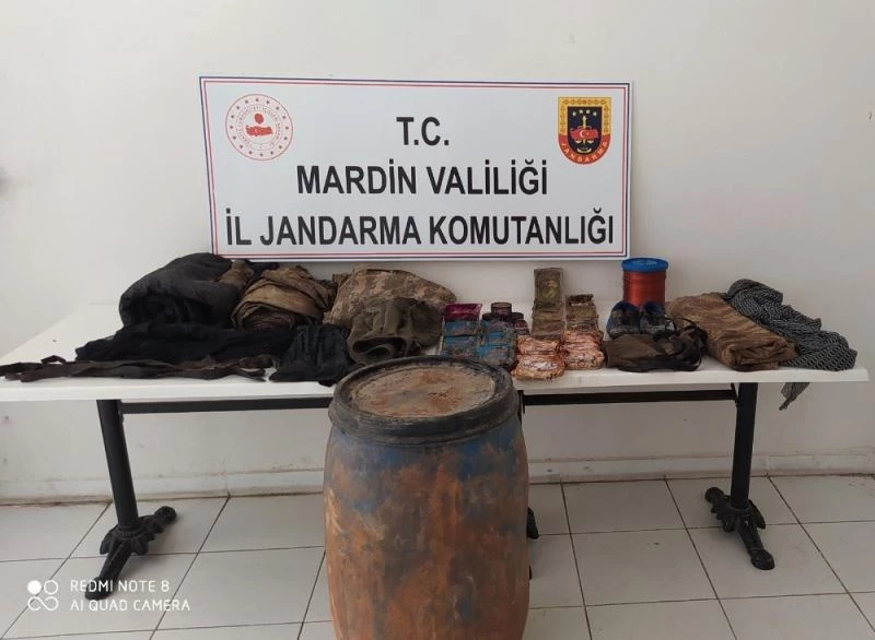 Mardin’de terör örgütüne ait iki farklı noktada el bombası ile yaşam malzemesi ele geçirildi