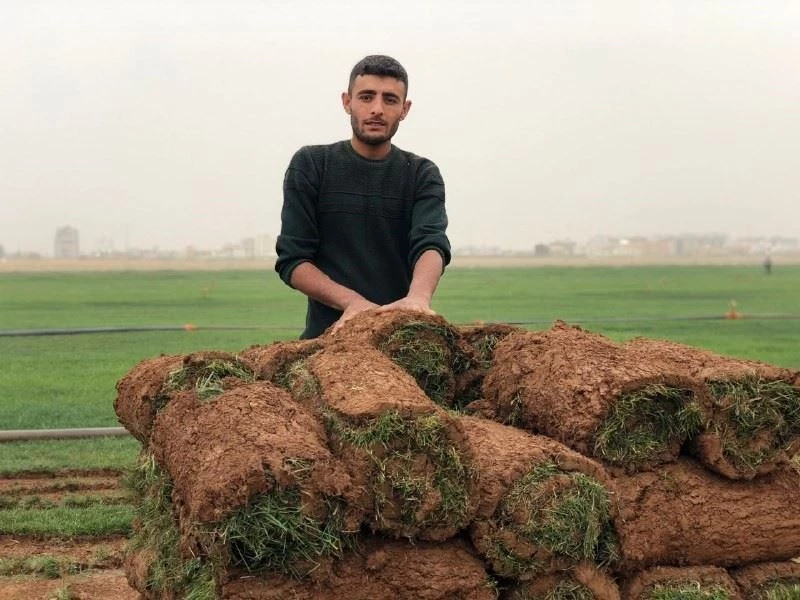 Kızıltepe’de yaşayan peyzaj mühendisi Bilal Akyel, batıdan getirdiği rolü çimlerin nakliyesine çok fazla ücret vermemek için Kızıltepe’de 200 dönüm arazi üzerine çim ekti. Üretilen çimler istenilen seviyeye ulaştığında makinelerle biçilerek, işçiler tarafından rulo haline getirilip paketlenerek tırlara dolduruluyor. Akyel, tohumdan ürettiği kaliteli rulo çimlerini Elazığ, Malatya, Şırnak gibi illerin yanı sıra Kuzey Irak’ta da bir çok ile gönderiyor. Talebin arttığını gören Akyel, 300 dönüm arazi üzerinde daha çim üretmeye başladı.