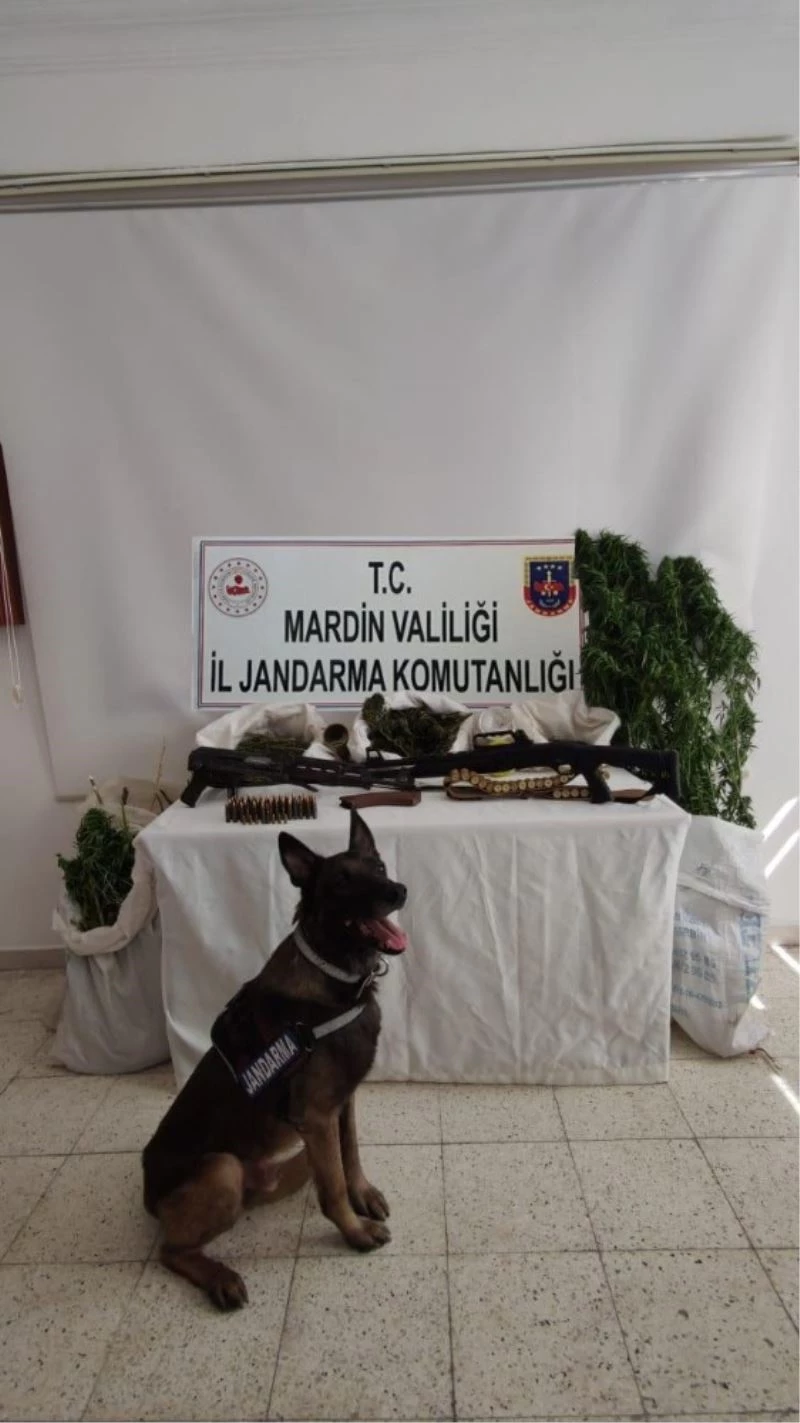 Öte yandan Artuklu Ahmetli Mahallesi’nde faaliyetlerine devam eden jandarma ekipleri, A.A. isimli şahsın evine ve bahçesine de operasyon düzenlendi. Uyuşturucu madde arama köpeği ’Sabuh’ ile yapılan aramada 2 kilogram esrar ile 4 kök kenevir bitkisi ele geçirildi. A.A.’nın evinde yapılan aramada ayrıca 1 adet av tüfeği, 1 adet Kaleşnikof piyade tüfeği ile tüfeğe ait 59 adet kurşun ele geçirildi.