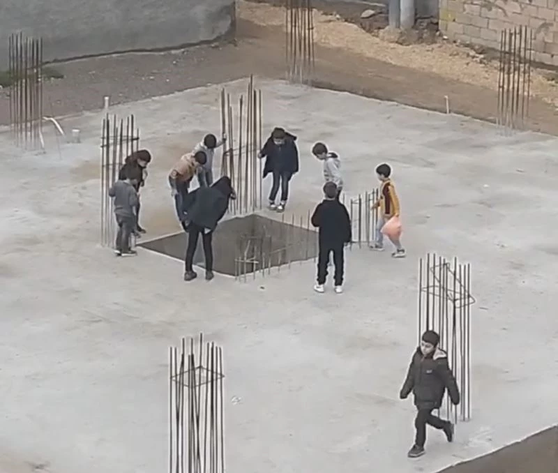Mazıdağı ilçesinde yeni başlanan bir inşaat alanında 2 metre yüksekliğinde ve içi su dolu olan kuyu şeklindeki yerin üstü açık bırakılırken, çocukların ise etrafında toplanarak oynaması görenleri korkuttu. Poyraz Mahallesi Ömer Halisdemir Caddesi Cumhuriyet İlköğretim Okulu yanında yeni yapımına başlanılan inşaat alanında yaklaşık 2-3 metre derinliğindeki kuyu benzeri yerin üstü açık bırakıldı. Mahalledeki çocuklar inşaat alanındaki bu yerin etrafında toplanarak, içi su dolu kuyuya taş atarak oynarken, bu durum görenlerin yüreklerini ağızlarına getirdi. Çocukların, boğulma tehlikesi ile karşı karşıya kaldıklarının farkında olmadan oyun oynamaları bir vatandaşın telefon kamerasına kaydedildi.