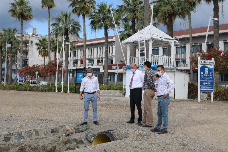Belediye Başkanı Mehmet Oktay da halk plajında yürütülen çalışmaları denetledi. Başkan yardımcıları İhsan Öztürk ve Burak Demirtaş ile birlikte altyapı ve düzenleme çalışmalarını denetleyen Oktay; “İlçe Hıfzıssıhha Kurulu’nun karar almasıyla birlikte sahillerimizi halka açacağız. Tabi ki bundan sonraki süreç pandemi kurallarına göre işleyecek. Biz de hazırlıklarımızı tamamlıyoruz. Altyapı çalışmalarının yanı sıra duş, tuvalet gibi birimleri pandemi kurallarına göre revize ediyoruz” dedi.
