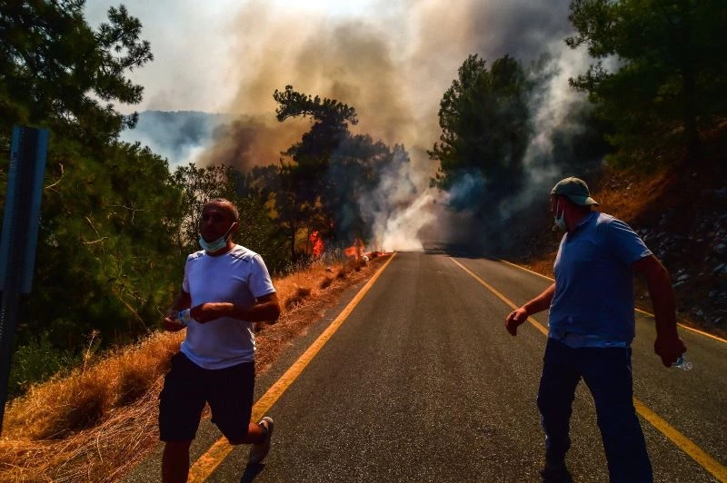 MUĞLA – Marmaris’in Turunç ilçesinde ormanlık alandan bir anda yükselen alevler yolu trafiğe kapattı. Vatandaşlar yangına çalıyla vurarak ve su dökerek müdahale etti.