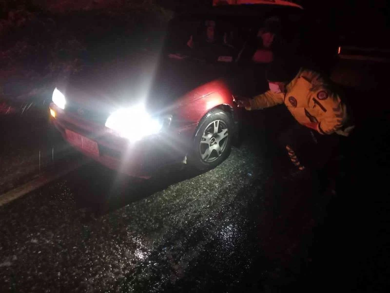 Muğla’nın Marmaris ilçesinde kar nedeniyle ulaşıma kapanan yolda kalan vatandaşlara trafik ekipleri çay ikram etti.