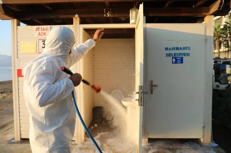 Kentin temizliği ile ilgili çalışmalarına aralıksız devam eden Marmaris Belediyesi, korona virüs salgınının ilk görüldüğü andan itibaren ilaçlama ve dezenfekte çalışmalarına ağırlık vermişti. Bu süreçte başarılı bir performans sergileyen belediye, vakaların artması üzerine rutin temizlik ve dezenfekte çalışmalarını yoğunlaştırarak halk sağlığını korumak için kolları sıvadı. Bu çerçevede Temizlik İşleri Müdürlüğü ekipleri sokakları, meydanları, oturma gruplarını, çöp konteynerlerini ilaçlı sularla yıkadı. Ardından ilaçlama ekipleri ilaçlama yaparak dezenfekte etti.