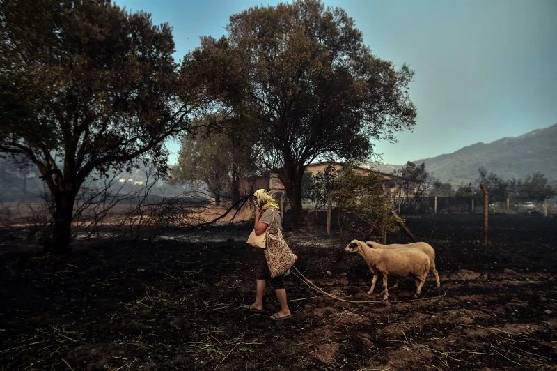 Eşi ormanda yangına müdahale eden Emine Ergün, ipinden tuttuğu koyunları yangından kaçırmaya çalıştı. Askerlerin kendisini ve hayvanları kurtardığını söyleyen Ergün, “Askerler arabaya bindirmeseydi hasar görecektik. Ben de yanıyordum. Beni askerler kurtardı. Hayvanlarımı da askerler kurtardı. 2 hayvanım da kaçtı. Evin durumunu bilmiyorum” dedi. Alevlerin evlere ulaşmasıyla vatandaşlar hayvanlarını alıp kumsala indi. Bazı vatandaşlar tahliye botlarıyla bölgeden uzaklaştı. Hayvanlarını bırakamayanlar kumsalda kaldı.