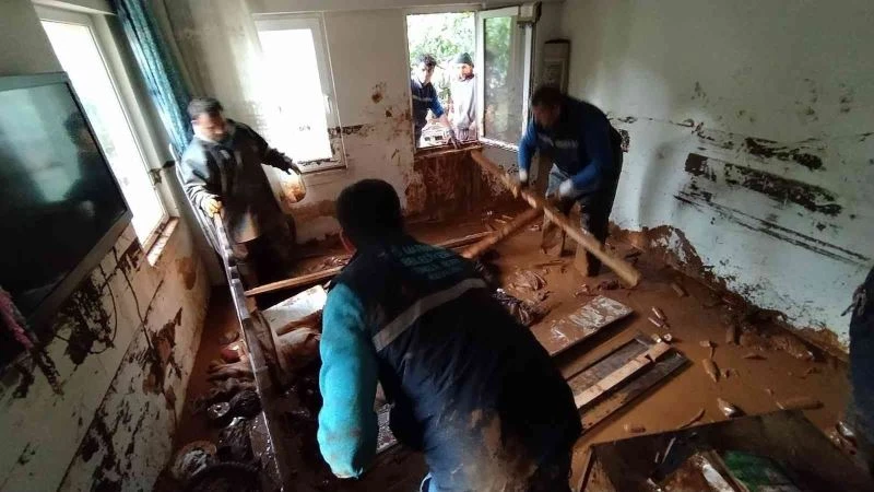Sel nedeniyle bahçe ve evlere dolan çamurları temizlemek için uğraşan ekipler 5 gündür bodrum katlara dolan suları tahliye etmek, kullanılmaz hale gelen eşyaları çıkarmak ve binaların içini temizlemek için ev sahipleriyle birlikte durmaksızın çalışıyor.
