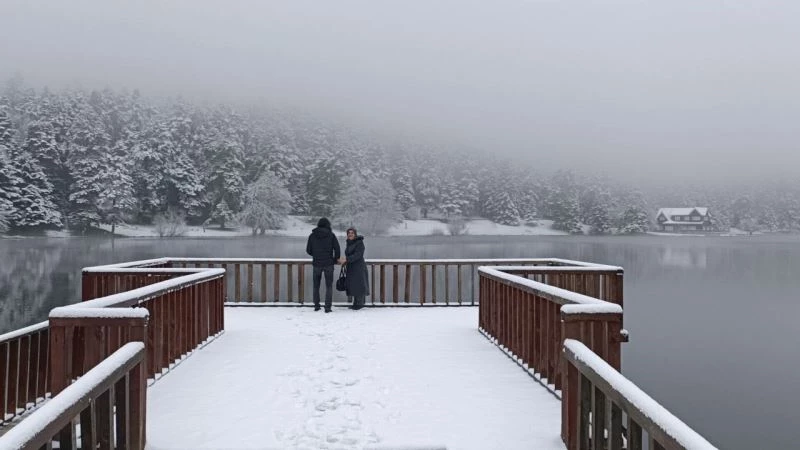 Bolu’nun doğal güzellikleriyle ünlü Gölcük Tabiat Parkı, mart ayında etkili olan kar yağışıyla beyaza büründü. Tabiat parkına gelen tatilciler, yürüyüş yaparak karın tadını çıkardı.