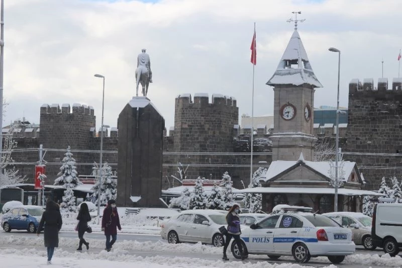Kayseri’de dün gece saatlerinden bu yana etkili olan kar yağışı, kenti beyaza bürüdü.