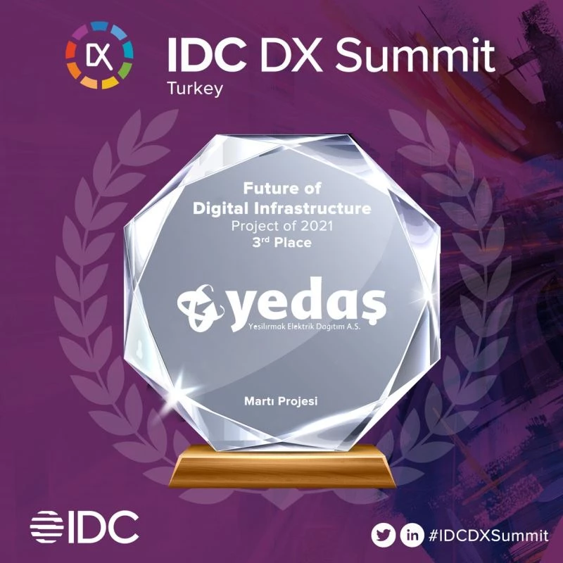 YEDAŞ, yenilikçi teknolojileriyle aldığı ödüllere bir yenisini daha ekledi. Sektöründe dijital dönüşüme öncülük eden bir şirket olarak, kendi kaynaklarıyla uygulamaya geçirdiği projesiyle IDC Dijital Dönüşüm Ödülleri’nde büyük bir başarıya imza attı.