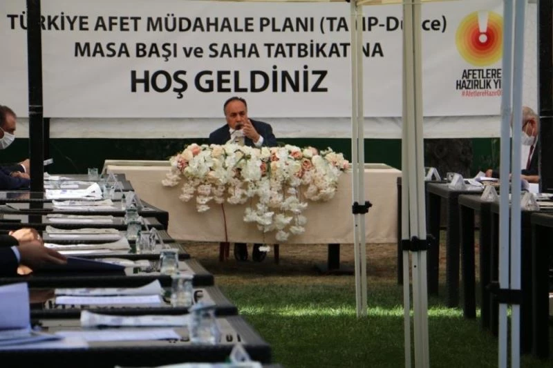 Düzce Valiliği ve Düzce İl Afet ve Acil Durum Müdürlüğü bünyesinde kentte meydana gelebilecek sel ve su baskını olaylarında can ve mal kaybının yaşanmaması veya en aza indirilmesi için masa başı ve saha tatbikatı yapıldı. Tatbikatta 26 yerel düzey çalışma grubu plan sorumlularının tatbikatla ilgili görüş ve önerileri de alındı. Düzce Valiliği’nden yapılan açıklamada “İlimizde meydana gelebilecek Sel-Su Baskını olaylarında can ve mal kaybının yaşanmaması veya en aza indirilmesi, hazırlanan afet ve acil durum planlarının uygulanabilirliğini gerçekçi ortamlarda test edilmesi, ekiplerin kapasite ve kabiliyetlerinin görülmesi, yönetim fonksiyonu içinde yer alanların karar verme sürecindeki başarısının ölçülmesi amacıyla 07 Ekim 2020 günü saat 14:00’de Sel-Su Baskını Senaryosu üzerinden Düzce-2020 TAMP İl Düzeyi Masabaşı Tatbikatı Vali Yardımcımız Sayın Süleyman Hurrem Aksoy başkanlığında İl Afet ve Acil Durum Koordinasyon Kurulu Üyeleri’nin katılımıyla gerçekleştirilmiştir. Tabikat sonunda, Vali Yardımcımız Süleyman Hurrem Aksoy afet ve acil durumlarda etkinliğin artırılması için böyle tatbikatların önemine değinerek yaptığı değerlendirme konuşmasından sonra 26 adet Yerel Düzey Çalışma Grubu Plan Sorumlularının tatbikatla ilgili görüş ve önerileri alınırak tatbikat sonlandırılmıştır” denildi.