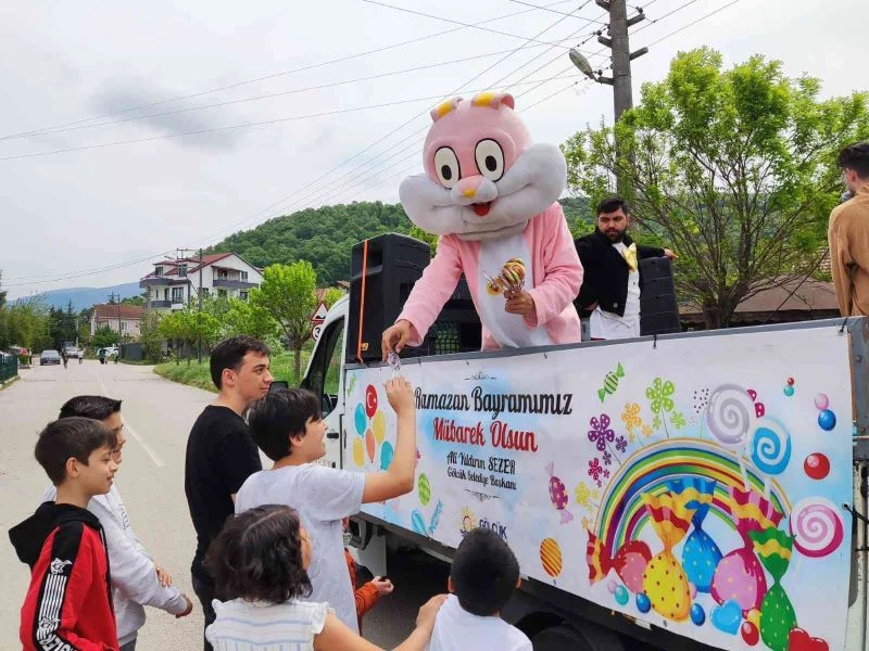 Gölcük Belediyesi ekipleri, Ramazan Bayramı’nın ilk gününde masal kahramanı maskotlarla sokak sokak gezerek dağıttıkları şekerle ilçedeki çocukların bayram sevinçlerine ortak oldu.