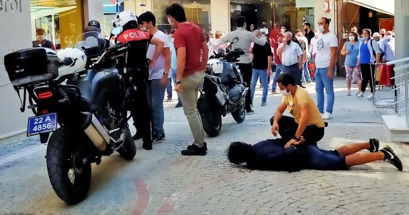 Olay, Edirne merkeze bağlı Sabuni Mahallesi’nde öğlen saatlerinde meydana geldi. Edirne Emniyet Müdürlüğü ekipleri, trafiğe kapalı caddelerde, rutin maske ve sosyal mesafe denetimlerini gerçekleştirirken, maske takmayan 2 şüpheli şahsı önce uyardı.