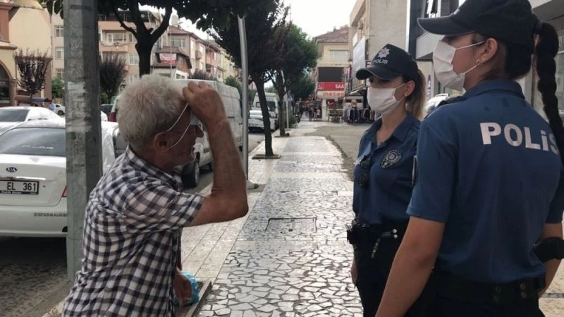 Denetimler sırasında bir vatandaşın ise maskesini çenesinin altına taktığını gören polis ekipleri, şahsı uyardı. Yağmur yağdığı için maske takmadığını belirten vatandaş, “Yağmur yağıyor o zaman maskeyi başıma takayım” diyerek kendini savundu. Vatandaşa polis ekiplerinin ikinci uyarısı sonrasında maskesini takarak uzaklaştı.