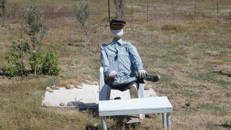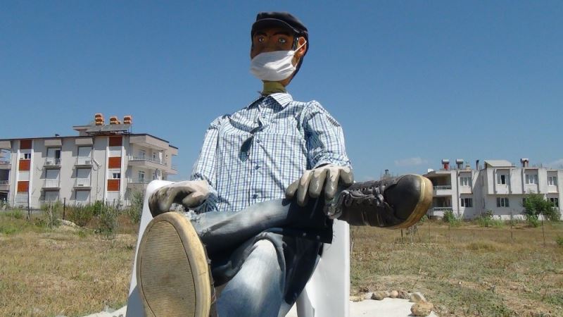 Antalya’nın Serik ilçesinde yaşayan Mustafa Özmen, yaptığı korkuluk sayesinde insanlara maske takmasını hatırlatıyor. 62 yaşındaki Özmen, "Yoldan geçenler, korkulukta maskeyi görünce, ’onun maskesi var, bizim maskemiz yok’ diyorlar" dedi.