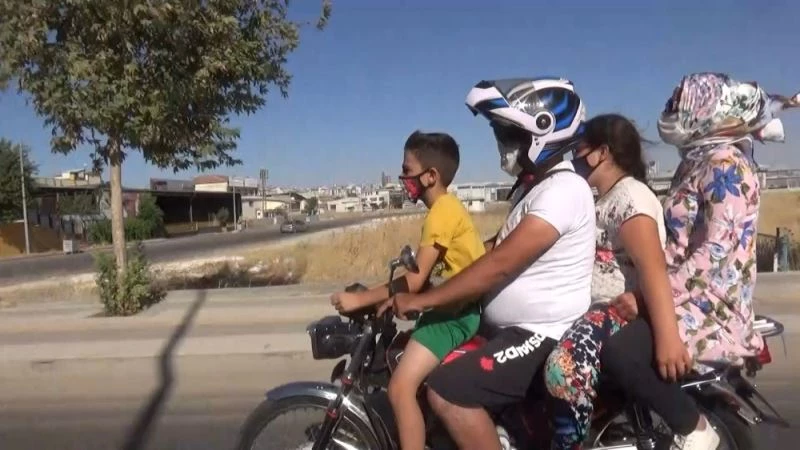 Gaziantep’te, 4 kişilik bir ailenin motosikletle yaptığı tehlikeli yolculuk kameralara yansırken, motosiklettekilerin maske takmaları gözden kaçmadı.
