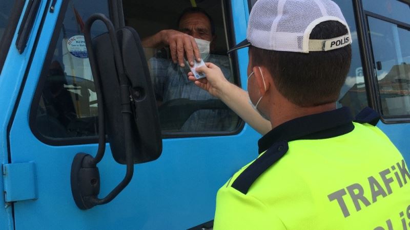 Edirne’nin Keşan ilçesinde polis ekipleri toplu taşıma araçlarında maske denetimi yaptı. Uygulamaya takılan bir minibüsteki maskesiz 2 yolcu ve şoföre ceza kesildi.