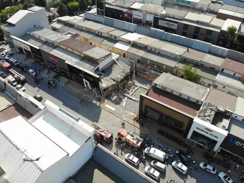Masko Sanayi Sitesi’nde çöken mağazanın enkazı havadan görüntülendi