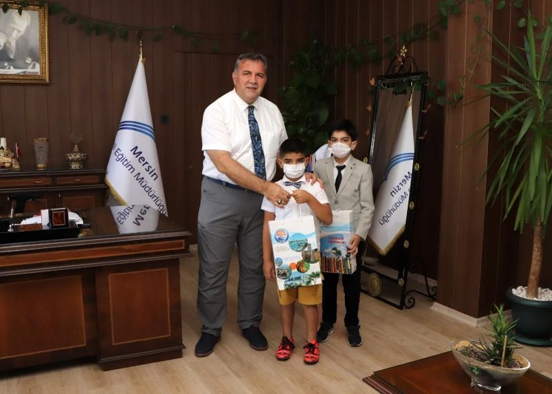 Singapur ve Asya Ülkeleri Matematik Olimpiyatları dünya birincisi öğrenciler, Mersin İl Milli Eğitim Müdürü Adem Koca tarafından ödüllendirildi.