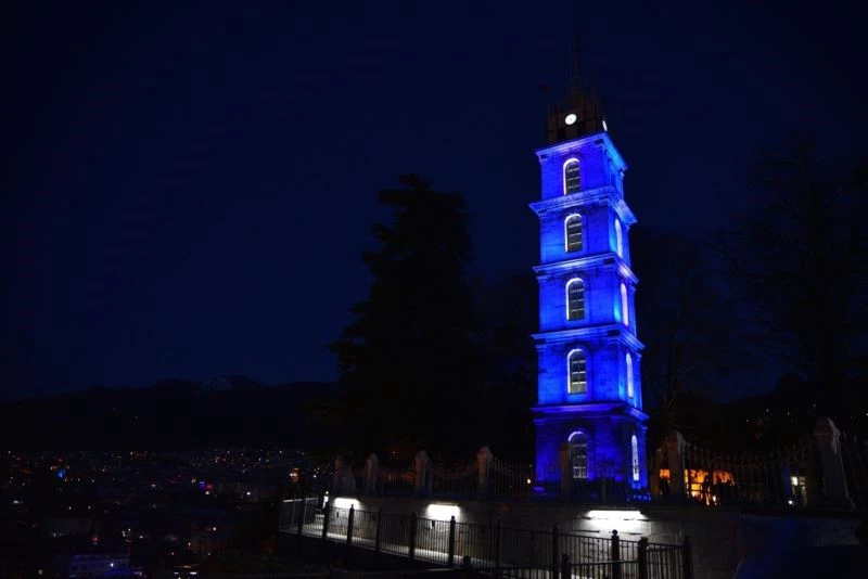 Bursa Büyükşehir Belediyesi, Birleşmiş Milletler’in otizmin hızlı artışı karşısında kamuoyunun dikkatini çekmek için deklare ettiği 2 Nisan Otizm Farkındalık Günü’nde, tarihi belediye binası ve Tophane’deki saat kulesini mavi renkle ışıklandırdı.