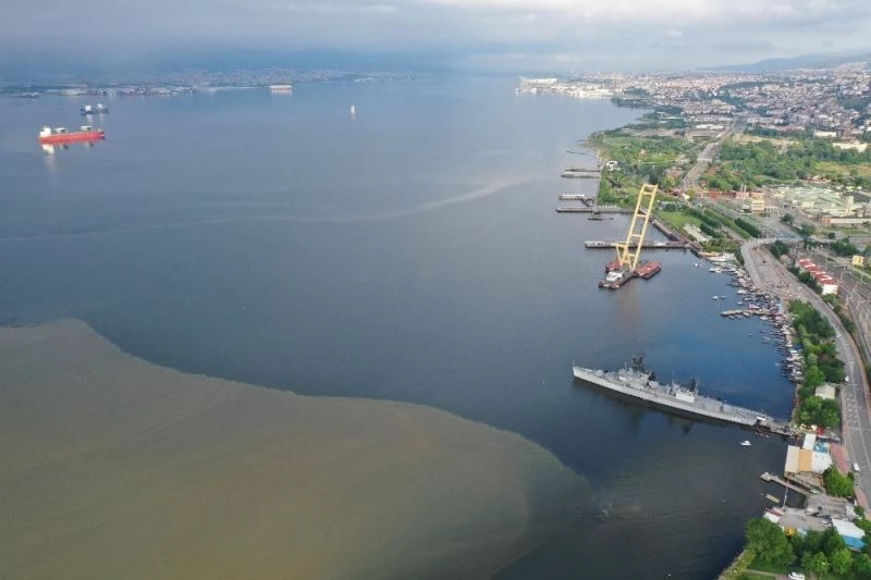 Kocaeli’de etkili olan yoğun sağanak yağışları nedeni ile sel suları İzmit Körfezi’ni kahverengiye bürüdü. Mavi ve kahverenginin buluştuğu körfez havadan görüntülendi.